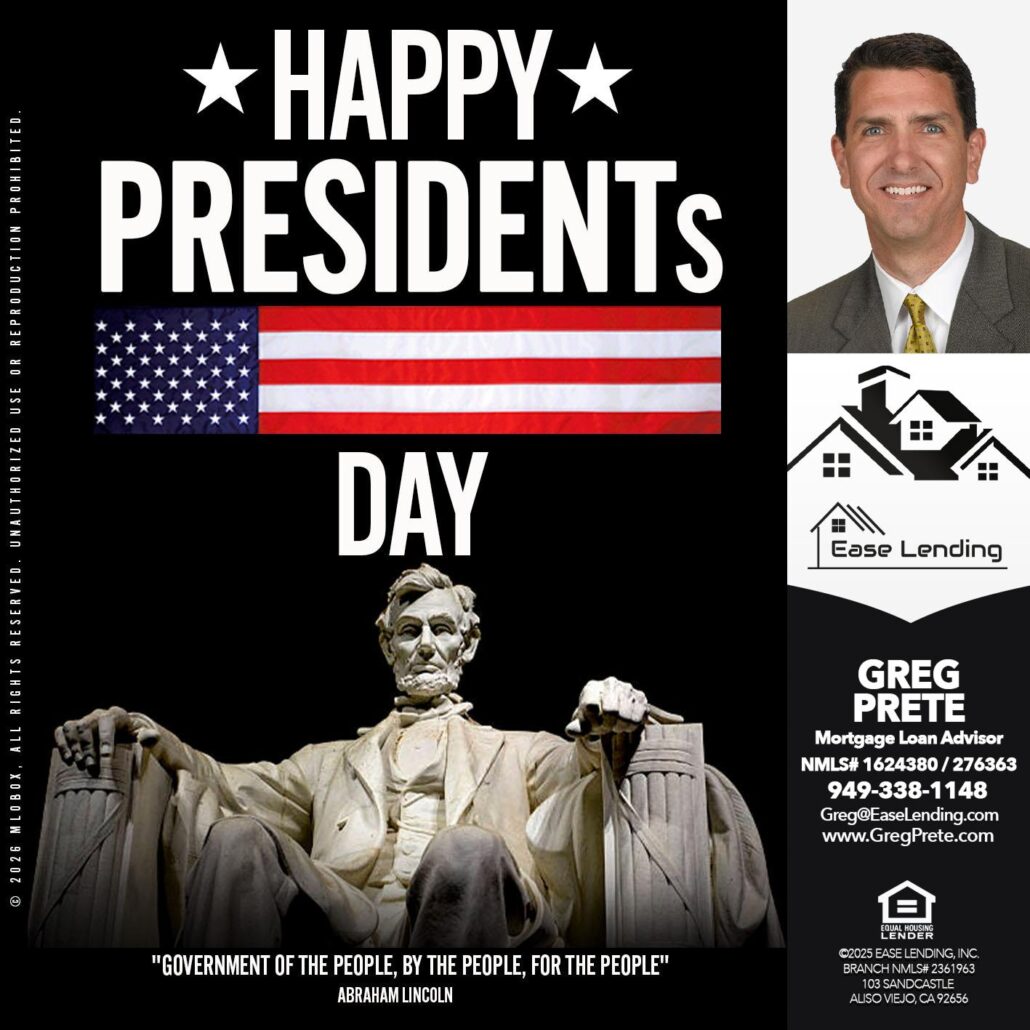 happy presidents day - Greg Prete -Licensed Loan AdvisorHi, my name is Greg Prete. I’m a Loan Officer with Ease Lending Team | Powered By Ease Lending Inc., offering personalized mortgage solutions, fast customized quotes, great rates and service with integrity.
