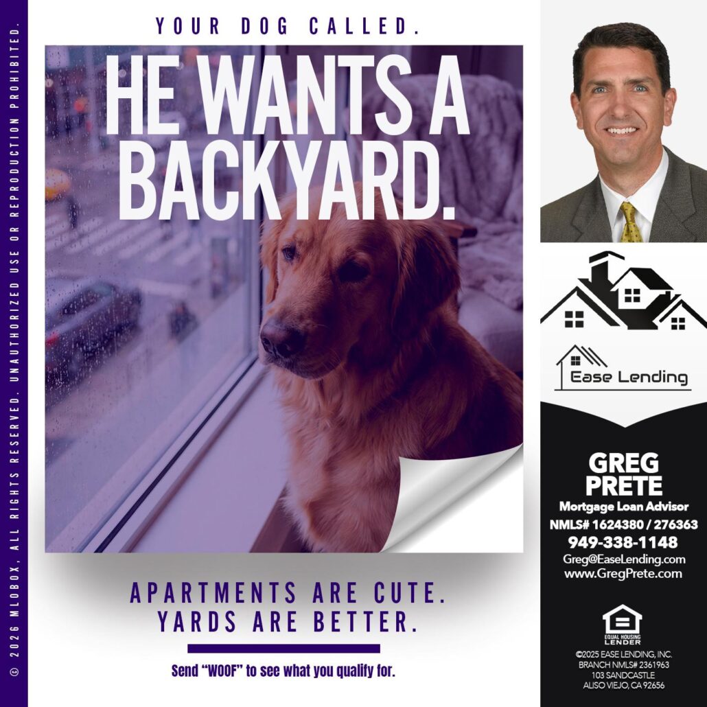 Hi, my name is Greg Prete. I’m a Loan Officer with Ease Lending Team | Powered By Ease Lending Inc., offering personalized mortgage solutions, fast customized quotes, great rates and service with integrity.